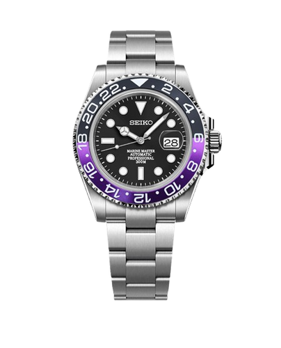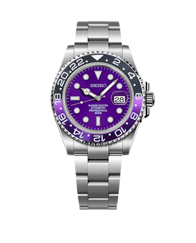 Inspired by the legendary GMT Master, this meticulously assembled timepiece houses the reliable NH35 automatic movement. Blending robust performance with timeless style, it's the ideal companion for both daily wear and standout occasions.